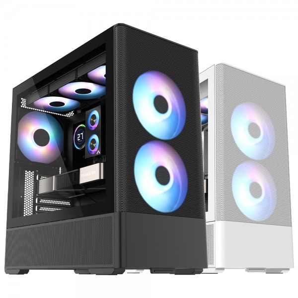 ATX 케이스 / 지원보드규격: ATX , ATX (후면커넥터) , M-ATX , M-ATX (후면커넥터) , ITX / VGA 길이: 430mm / CPU쿨러 높이: 172mm / 미들타워 / 파워미포함 / 수직 PCI형태: 슬롯변경형 / 전면 패널 타입: 강화유리 / 측면 패널 타입: 강화유리 / 쿨링팬: 총4개 / LED팬: 4개 / 후면: 120mm LED x1 / 내부 측면: 120mm LED x3 / 너비(W): 235mm / 깊이(D): 445mm / 높이(H): 492mm / 파워 장착 길이: 250mm / 파워 위치: 하단후면 / LED 색상: ARGB