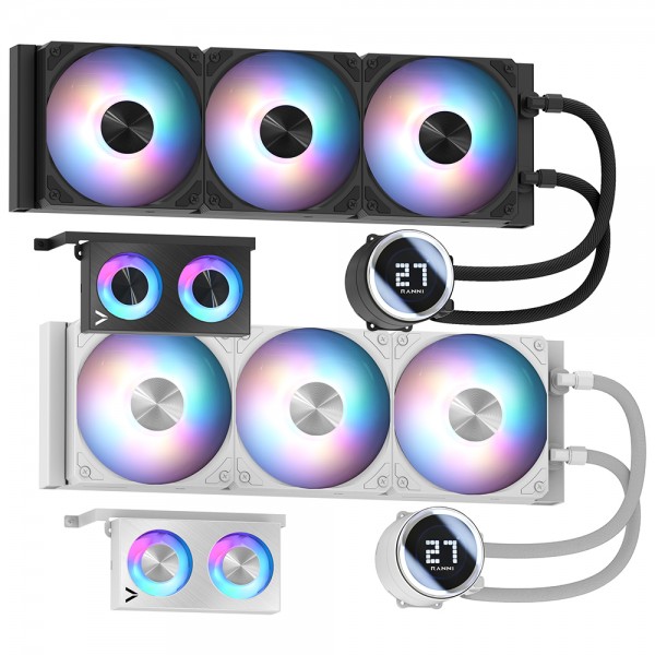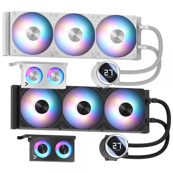 CPU 쿨러 / 수랭 / 팬 쿨러 / A/S기간 : 팬3년+누수보상6년 / [호환/크기] 인텔 소켓 : LGA1851 , LGA1700 , LGA1200 / AMD 소켓 : AM5 , AM4 / [수랭] 라디에이터 : 3열 / 라디에이터 길이 : 397mm / 라디에이터 두께 : 27mm / 호스 길이 : 400mm / [쿨링팬] 팬 크기 : 120mm / 팬 개수 : 3개 / 30T / 3-4핀 / 베어링 : 2볼 / 2700 RPM / 최대 풍량 : 96.1 CFM / 풍압(정압) : 4.31mmH₂O / 최대 팬소음 : 33.2dBA / 작동전압 : 팬 12V , LED 5V / [부가기능] LED 라이트 / PWM 지원 / LCD / 데이지체인 / 펌프속도조절 / 워터블록/로고 회전 / LCD크기 : 10cm (1:1) / RGB / LED시스템 : AURA SYNC , MYSTIC LIGHT , RGB FUSION , POLYCHROME , 제조사 소프트웨어 / [구성품/기타] 구성품 : 써멀컴파운드 / 써멀유형 : 주사기형 / 열전도율 : 15.6W/(m·K)