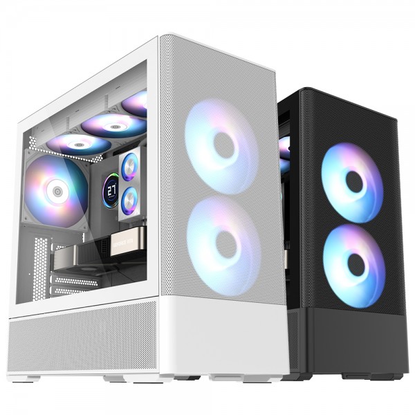 ATX 케이스 / 지원보드규격 : ATX , M-ATX , ITX / VGA 길이 : 400mm / CPU쿨러 높이 : 179mm / 미들타워 / [패널] 전면 패널 타입 : 메쉬 / 측면 패널 타입 : 강화유리 / 측면 개폐 방식 : 스윙도어 / [쿨러/튜닝] 쿨링팬 : 총4개 / 후면 : 140mm LED x1 / 전면 : 140mm LED x3 / [크기] 너비(W) : 230mm / 깊이(D) : 470mm / 높이(H) : 492mm / [호환성] 지원파워규격 : 표준-ATX / 파워 장착 길이 : 230mm / 파워 위치 : 하단후면 / RGB 컨트롤 / LED 색상 : RGB