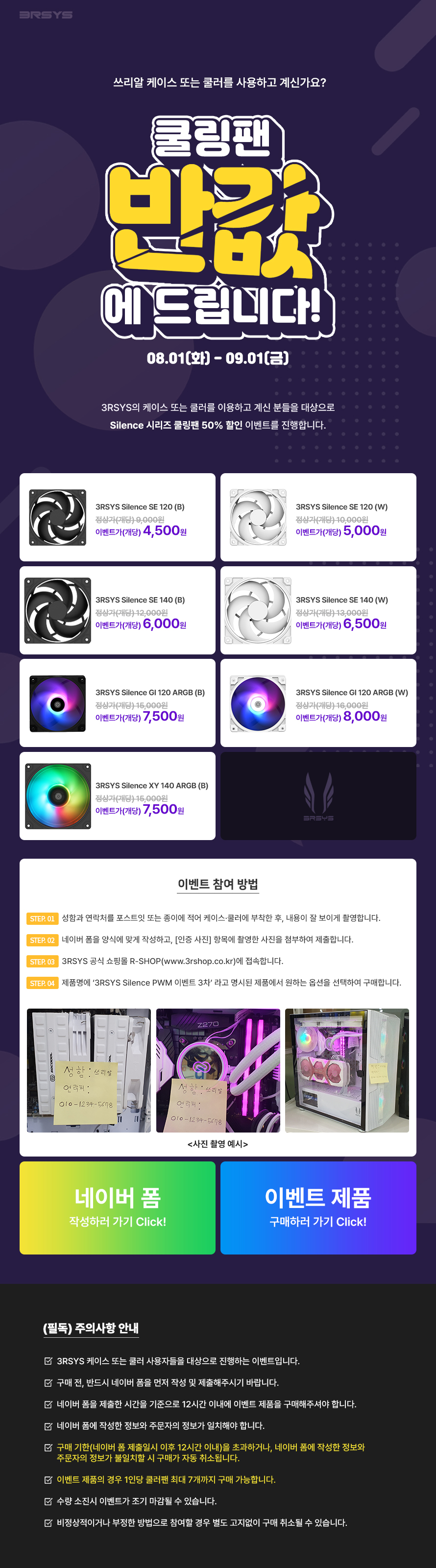 3RSYS 케이스&쿨러 이용자 대상 silence 팬 반값 할인 이벤트