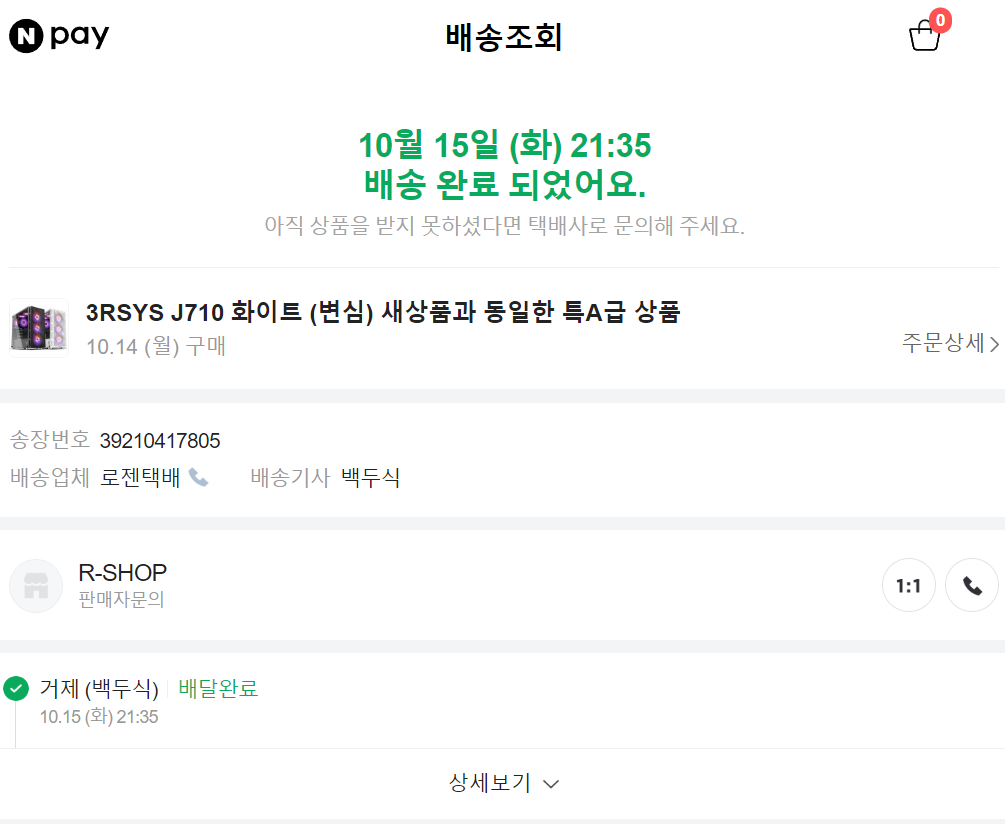 J710을 10월 14일 주문을 하고 10월 15일 수령을 하였습니다.