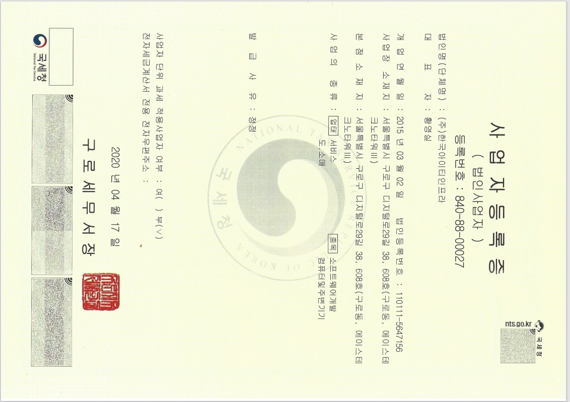 사업자등록증 첨부하여 보내드립니다.