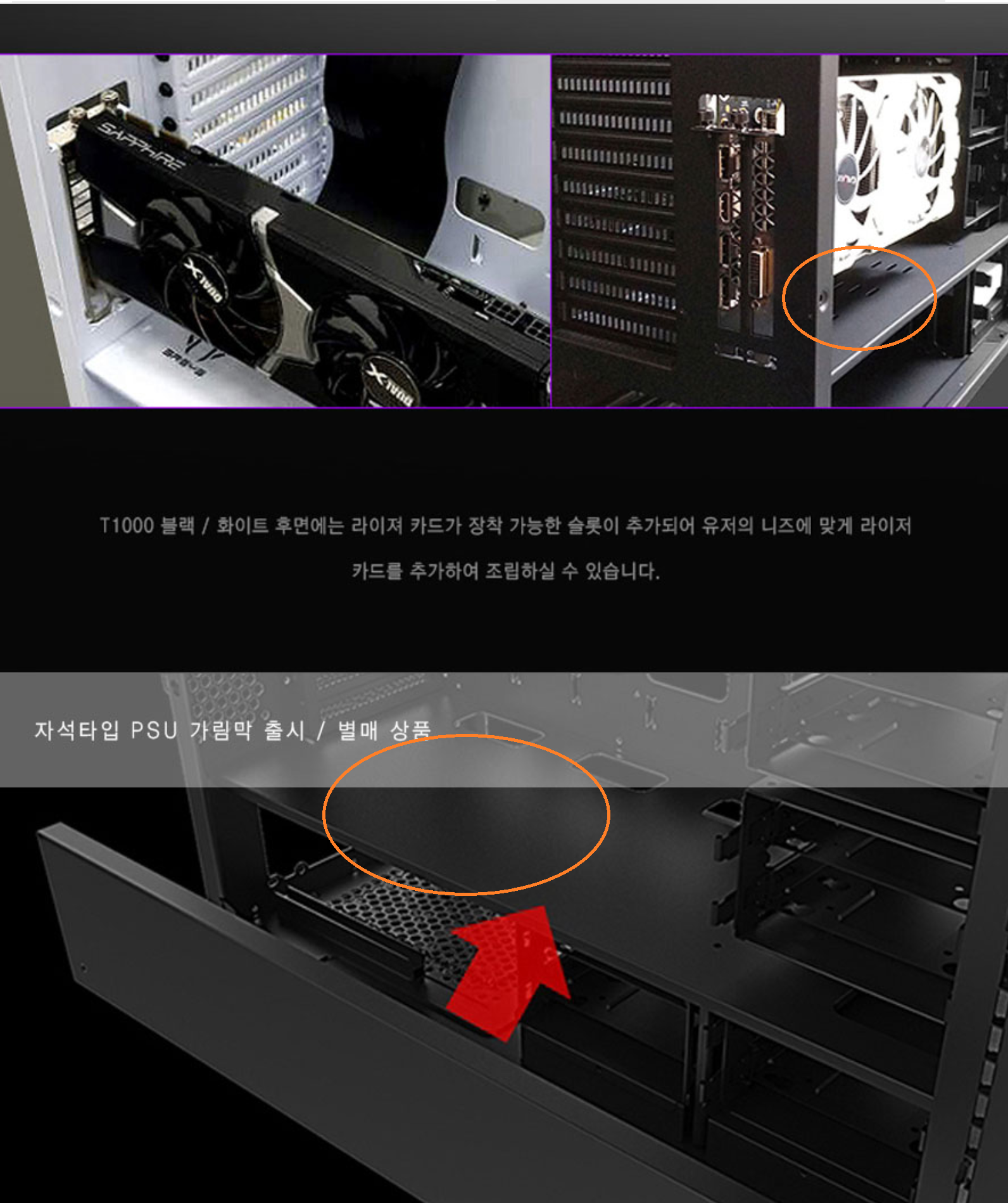 이 파워가 상단 흡기팬 구조를 가진 파워라 파워장착부 상단 에어홀이 있는 모델을 사야합니다.