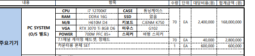 그래픽카드는 3070ti, 며 SSD 하드 1테라 달려있습니다.