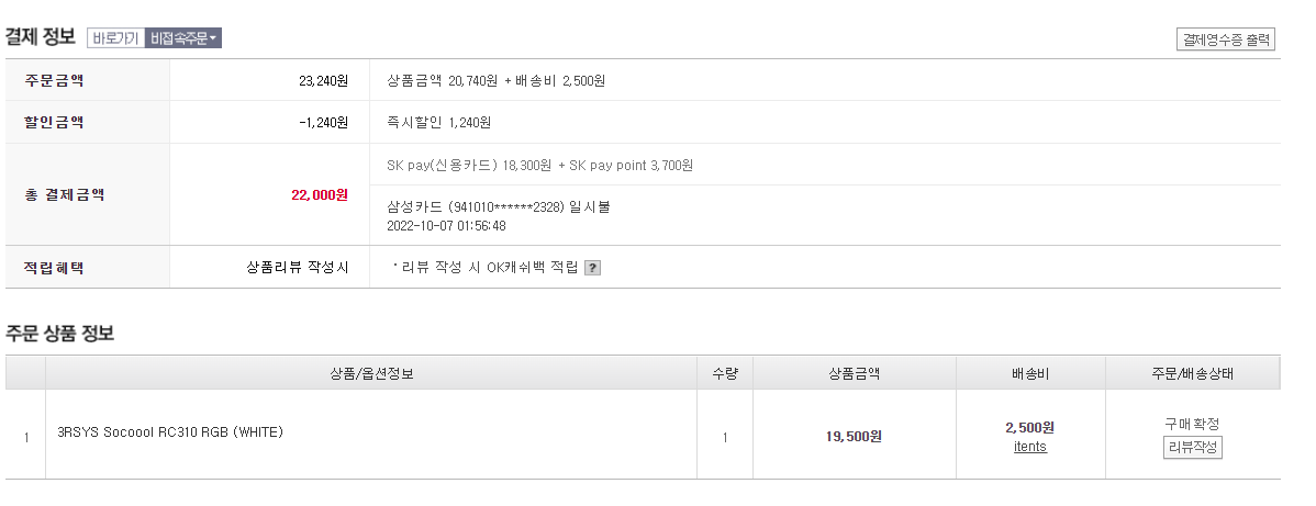 11번가에서 10월7일 주문해서 10월9일 받았어요