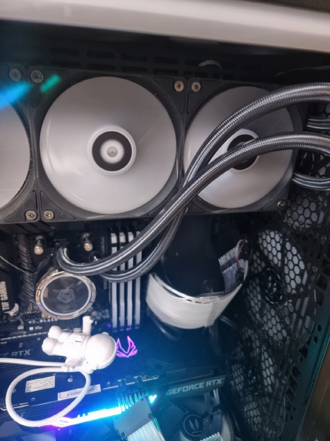 3팬 수랭이고 cpu 펌프에 led 있습니다.