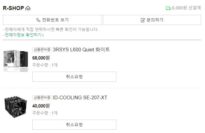 주말에 네이버페이로 케이스와 쿨러를 구매했습니다.